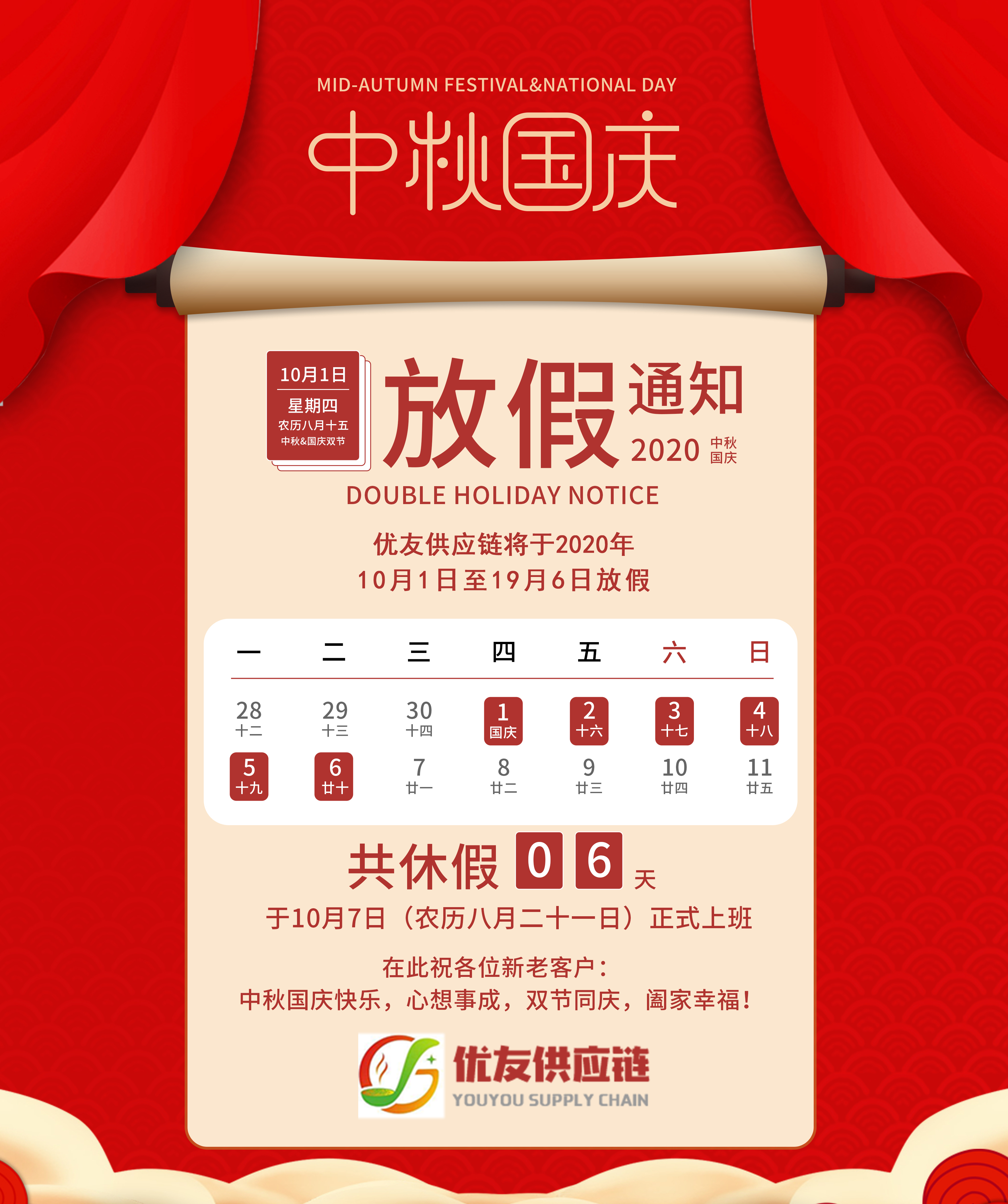 放假通知 — 优友供应链