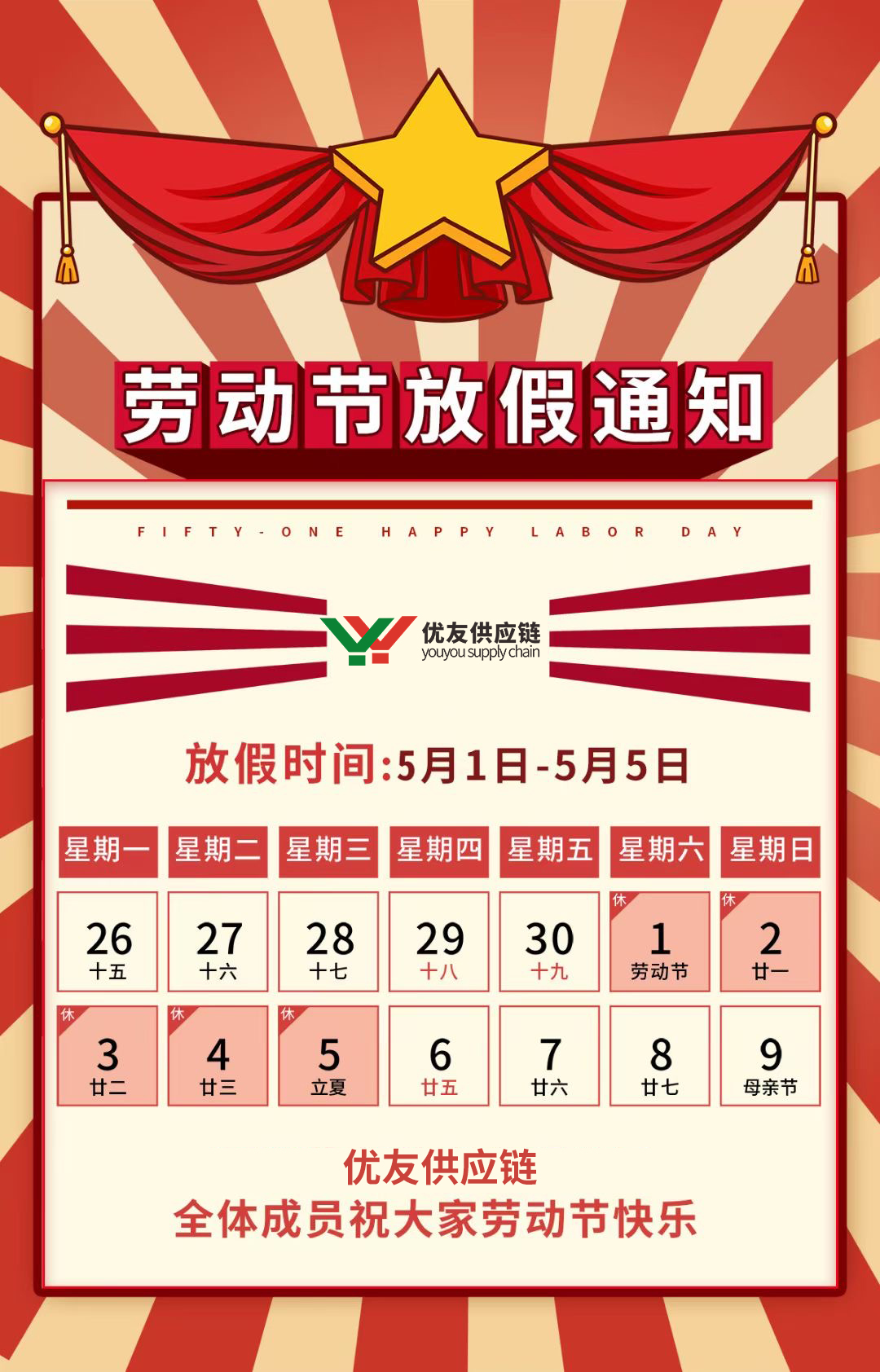 优友供应链祝大家五一快乐!