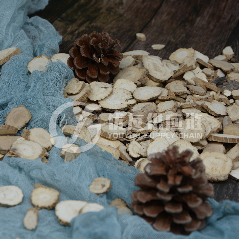 性味: 气味苦香,可去异味、增香辛。根呈圆锥形,长10~20cm,直径2~2.5cm。表面灰棕色,有横向突起的皮孔,顶端有凹陷的茎痕。质硬,断面白色,粉性足,皮部密布棕色油点。